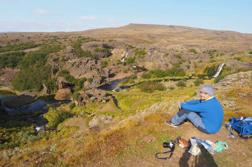 Wir laufen wieder zurück und fahren die abenteurliche Straße bis zum Haífoss. Die zwei Wasserfälle sind sehr schön und beeindruckend. Wir kochen Abendessen, machen eine lange Fotosession und beschließen danach, dass wir Langzeitbelichtung von Wasserfällen einfach langweilig finden.