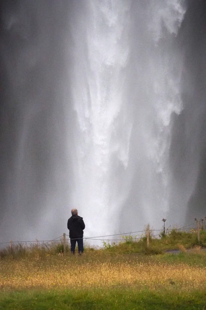Nächster Stopp ist der Seljalandsfoss. Tolles Erlebnis! Da es regnet und gefühlte 2.000 Menschen unterwegs sind, schauen wir uns den Wasserfall erst mal mit Brotzeit vom Auto aus an 😉 .
