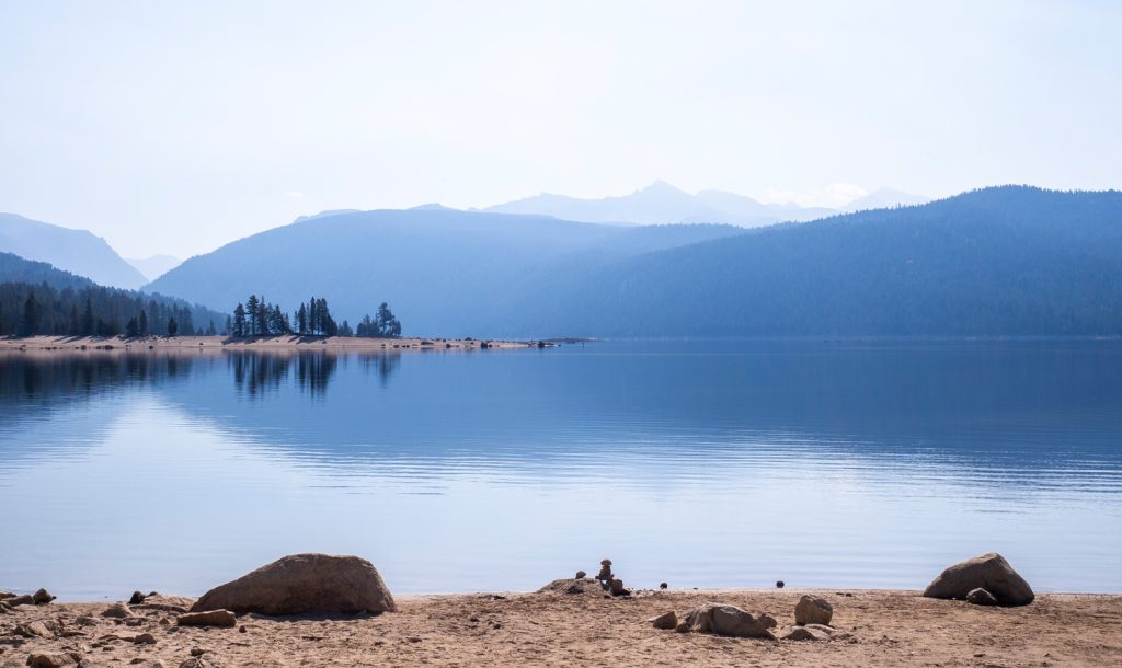 Bei Mammoth Lakes wütet seit ca. 1,5 Wochen ein Feuer, und in den Tälern vor der Stadt hängen dichte Rauchschwaden. Zum Glück nicht bei uns auf dem Trail, und so können wir ohne vom Rauch behindert zu werden bis nach Reds Meadows laufen.