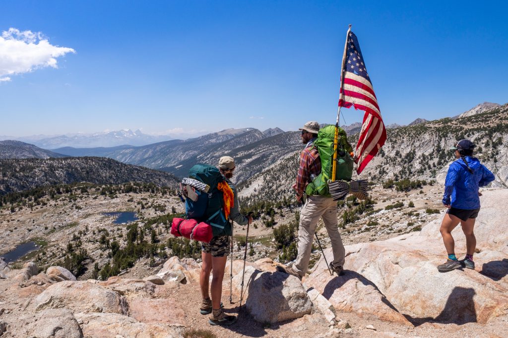 Für alle die es noch nicht wussten: Der 04. Juli ist Nationalfeiertag in Amerika. Ich begegne sogar zwei Wanderern mit Flagge, aber nur Gilligan läuft in meine Richtung, so dass ich ihn näher kennenlerne. Nach anfänglicher Abneigung merke ich dann doch, dass er ein netter Mensch ist (und mir in meiner Not sogar etwas Wasser überlässt, weil ich nicht geschaut habe wann die nächste Quelle kommt).