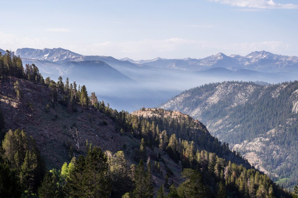 Der Rauch der Feuer bei Mammoth Lakes ist noch eine ganze Weile in der Ferne zu sehen, da der Trail heute wirklich stundenlang mit toller Sicht am Hang entlang läuft.