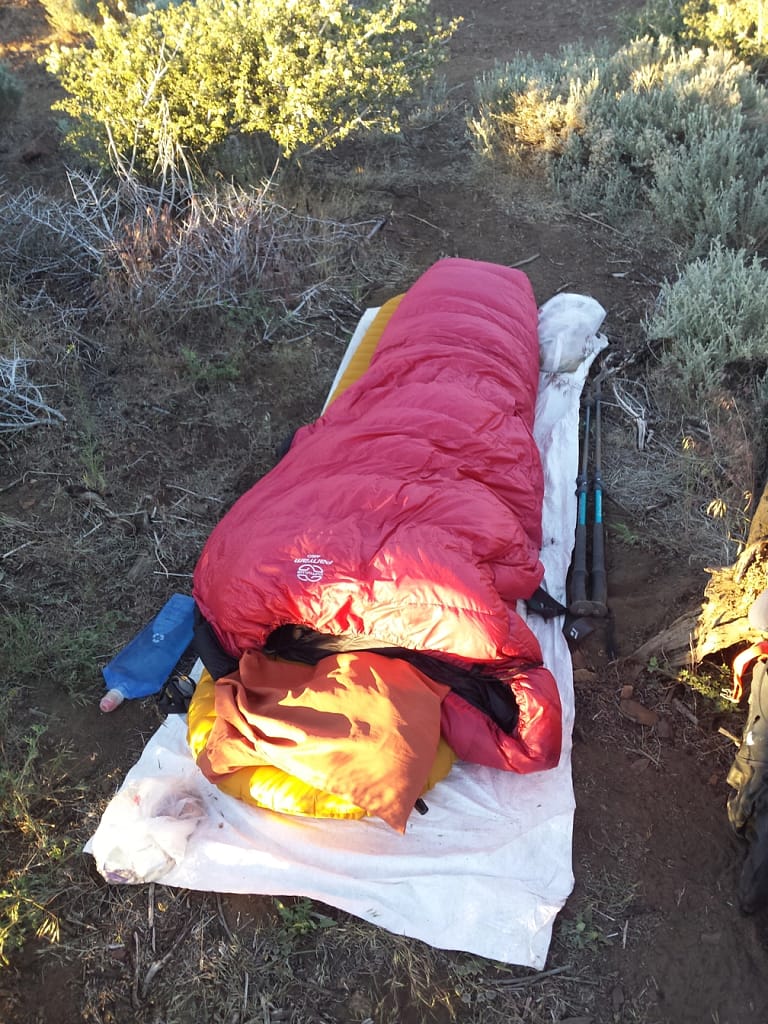 Zwei Mal habe ich Nachts das Gefühl, ein Tier schnuppert an meinem Essensbeutel zu meinen Füßen und ich strampel in meinem Schlafsack um es zu verjagen – Aber vielleicht war das ja nur ein Traum.