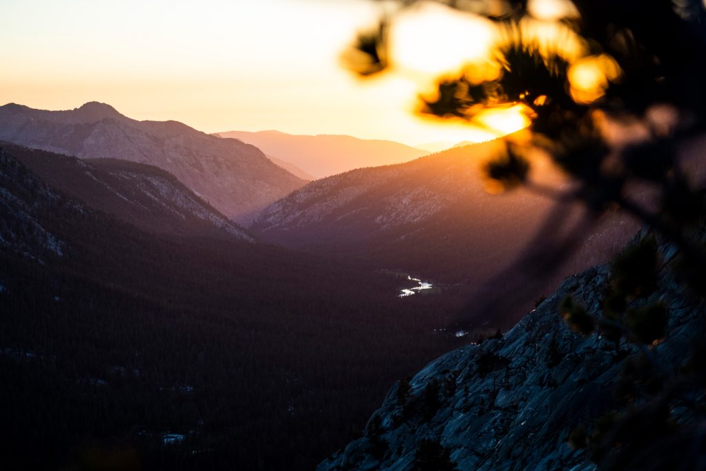 Bei den Grouse Meadows erlebe ich einen der schönsten Momente auf dem Trail: Die untergehende Sonne zaubert ein fast magisches Licht zwischen zwei Berge. Ich bleibe lange stehen und bewundere das Panorama.