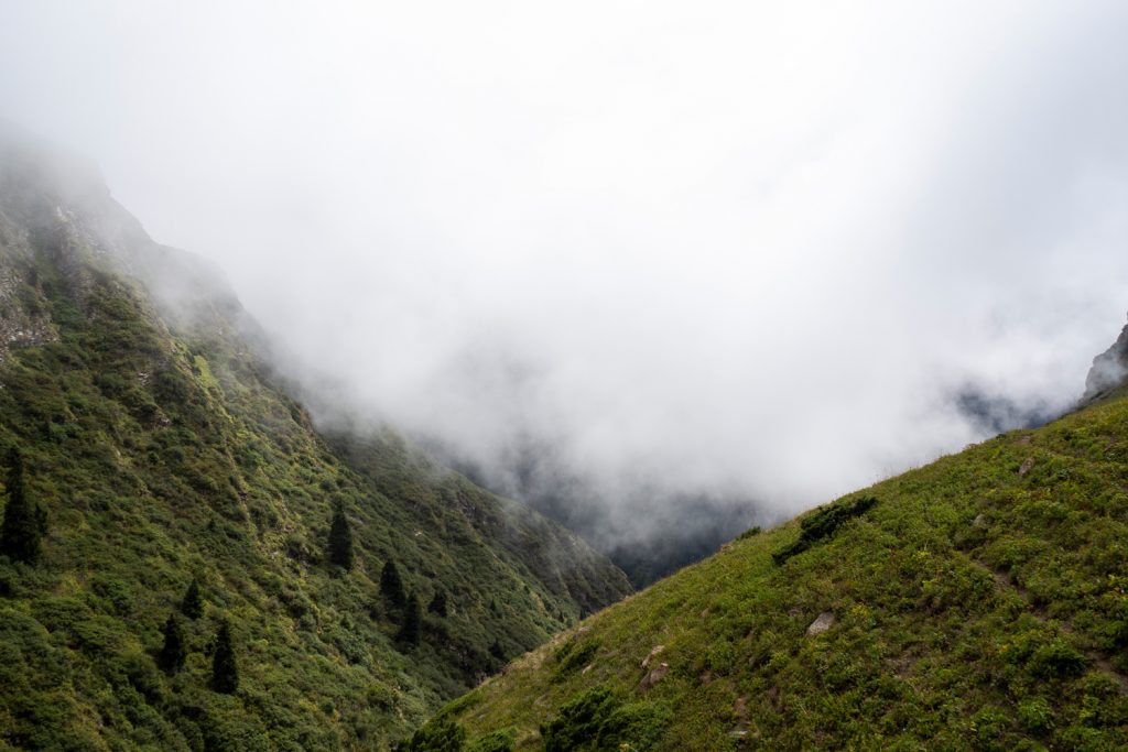 Schon bald starten wir nur mit Michis neuem Regenschirm und meiner Regenjacke bewaffnet, um das Hochtal des Aschuu-Tor zu erkunden.