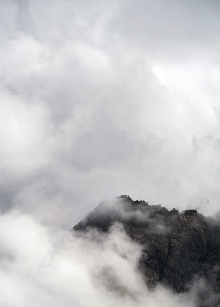 Als wir dann auf dem Pass stehen genießen wir ausgiebig die Aussicht auf die umliegenden hohen und wolkenverhangenen Berge. Es ist unser letzter Pass auf der Tour, und wir wollen das Panorama nochmal richtig auskosten.