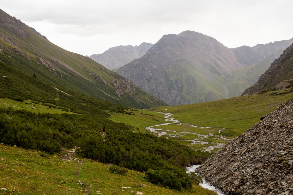 Funfact: Hier haben die Täler, die Orte in den Tälern, die Flüsse und der höchste Berg beim Talende den selben Namen. Heute und Morgen werden wir also im, am und zum (Chong) Kyzyl Suu laufen.