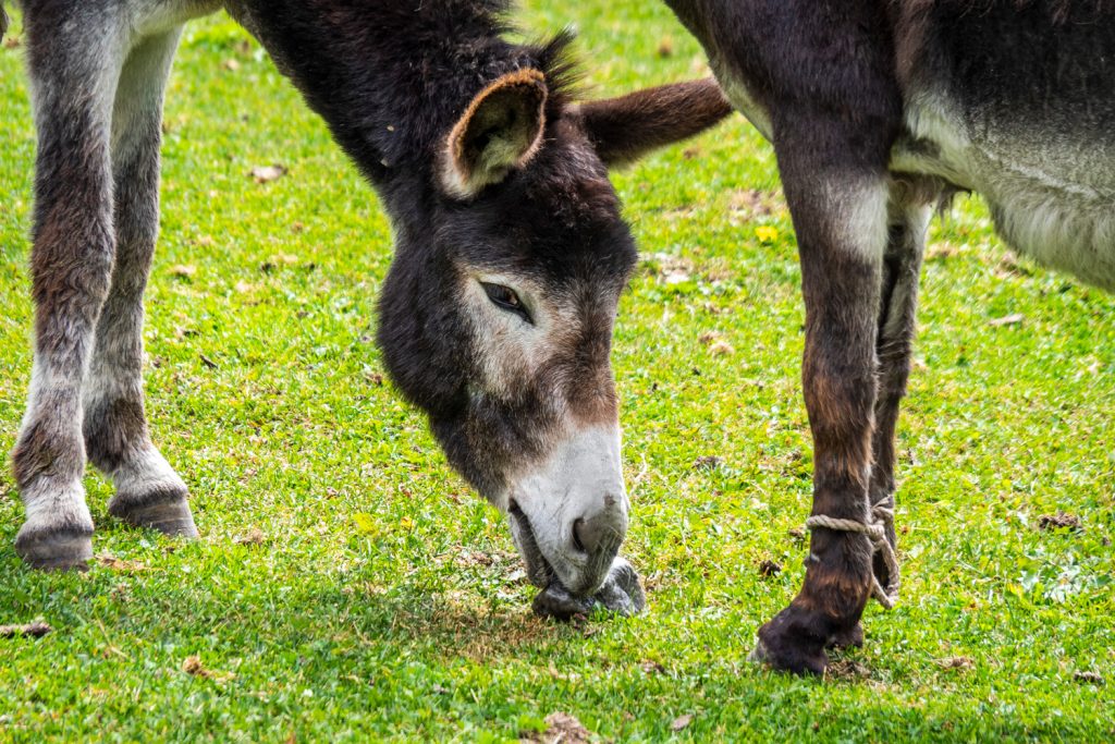 Die zusammengebundenen Füße sind hier ein beliebtes Mittel, um Pferde und Esel am weglaufen zu hindern. Sie können sich dann nur humpelnd vorwärts bewegen. ©Michi