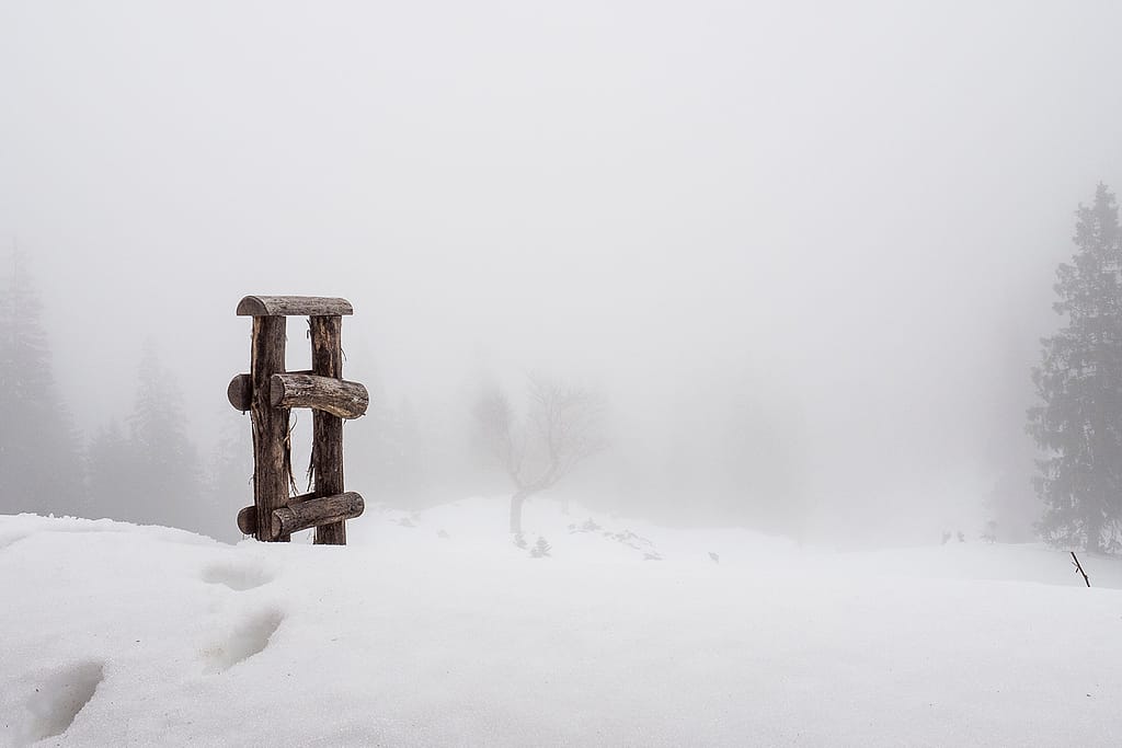 Ich hätte nie gedacht, dass es so schwer wird im Schnee vorwärts und vor allem nach oben zu kommen. Die Schlüsselstelle war ein starker Anstieg von ca 2m nach oben, den wir kaum geschafft haben weil man im Schnee einfach keinen Halt hatte. Wir haben uns dann an einem Latschenast hochgezogen. Hinzu kam, dass es weiter oben dann auch noch ein starkes Schneegestöber und Nebel gab. Die Sicht war wirklich ziemlich schlecht.